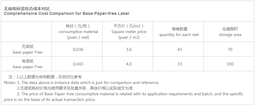 Using Base-Paper-free label is helpful to reduce the cost of material by 5~10% at least, and may achieve 20% discount.